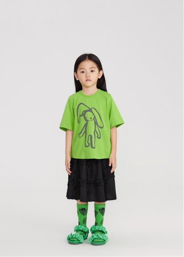 比如汗布面料,具有较好吸湿性和透气性的汗布布料,满足宝贝们在春夏季排汗快的需求,上身穿着舒适感更强。而且在jnby by JNBY这套系列的衣服中,装饰图案选用的元素十分具有童真童趣,满足孩子们的童心。小小的冒险家们带着拟人化的“珍珠兔”和兔子异形一起在迷宫里进行奇妙冒险,寻找惊喜。强烈的立体感与线条感,打破传统常规的T恤版型,将整体视觉效果上升到了一个新高度。